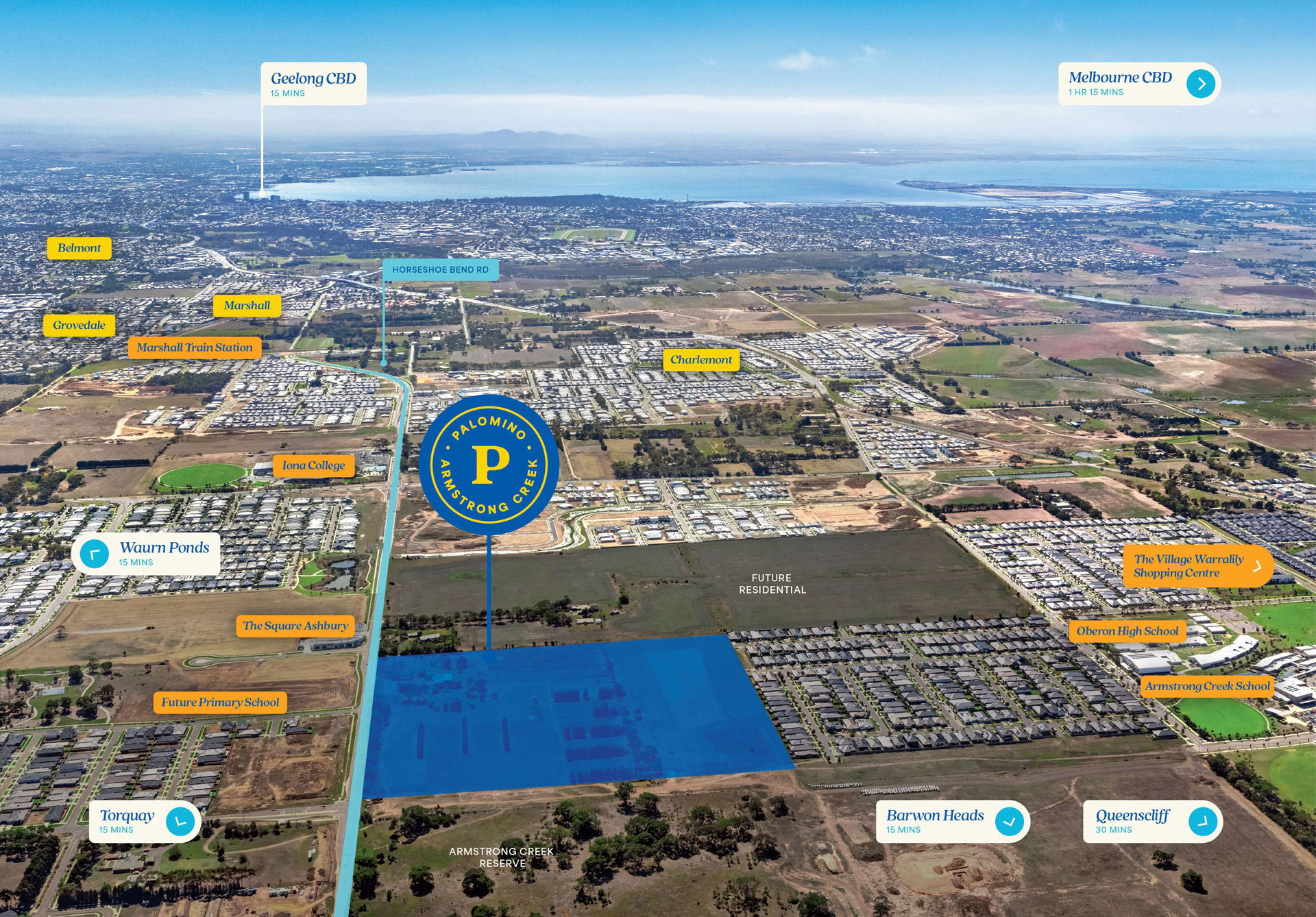 Introducing, Palomino – a locale brimming with potential. Nestled within a sought-after coastal community and within easy reach of Geelong, this address offers the perfect blend of lifestyle and opportunity. In Armstrong Creek, you’re not just securing a home, but a future defined by the calm of the coast, the beauty of lush, green surrounds and the promise of possibility in a location poised to thrive.